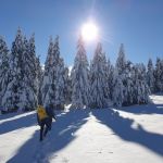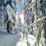 Joj, kolikokrat smo to zavriskali še do vrha. Darov, ovitih v belo pregrinjalo, je bilo vse polno. Vstopili smo v drug svet. Poseben privilegij je bilo puščati odtise pohodnih čevljev na debeli snežni “preprogi” in mahati čarobnim bitjecem z Menine. Prav nič sramežljivi, s prikupnimi pokrivali so uganjali vragolije. Če nisi bil pozoren, si kaj hitro dobil bel klobuček na glavo tudi sam.